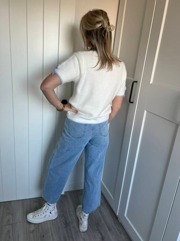 Deze denim zit zó comfortabel. De jeans is high waist en valt cropped. De kleur is perfect voor dit seizoen!