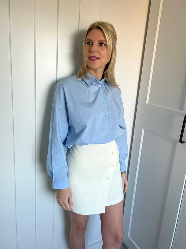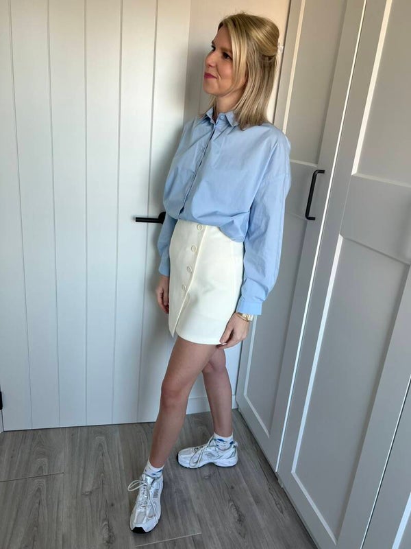 Deze korte ecru rok is echt perfect! Zó leuk met een toffe sneaker.