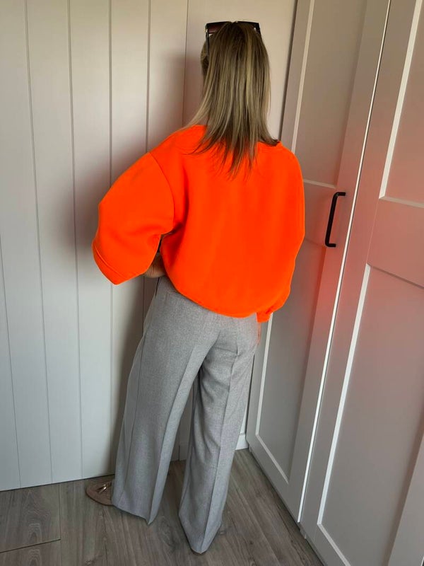 Prachtige feloranje sweater met geborduurde opdruk 'Life isn't perfect but your outfit can be'. De sweater is zalig om te dragen en kan ook op een jurkje worden gecombineerd. Ideaal om mee te nemen tijdens een frissere zomeravond.