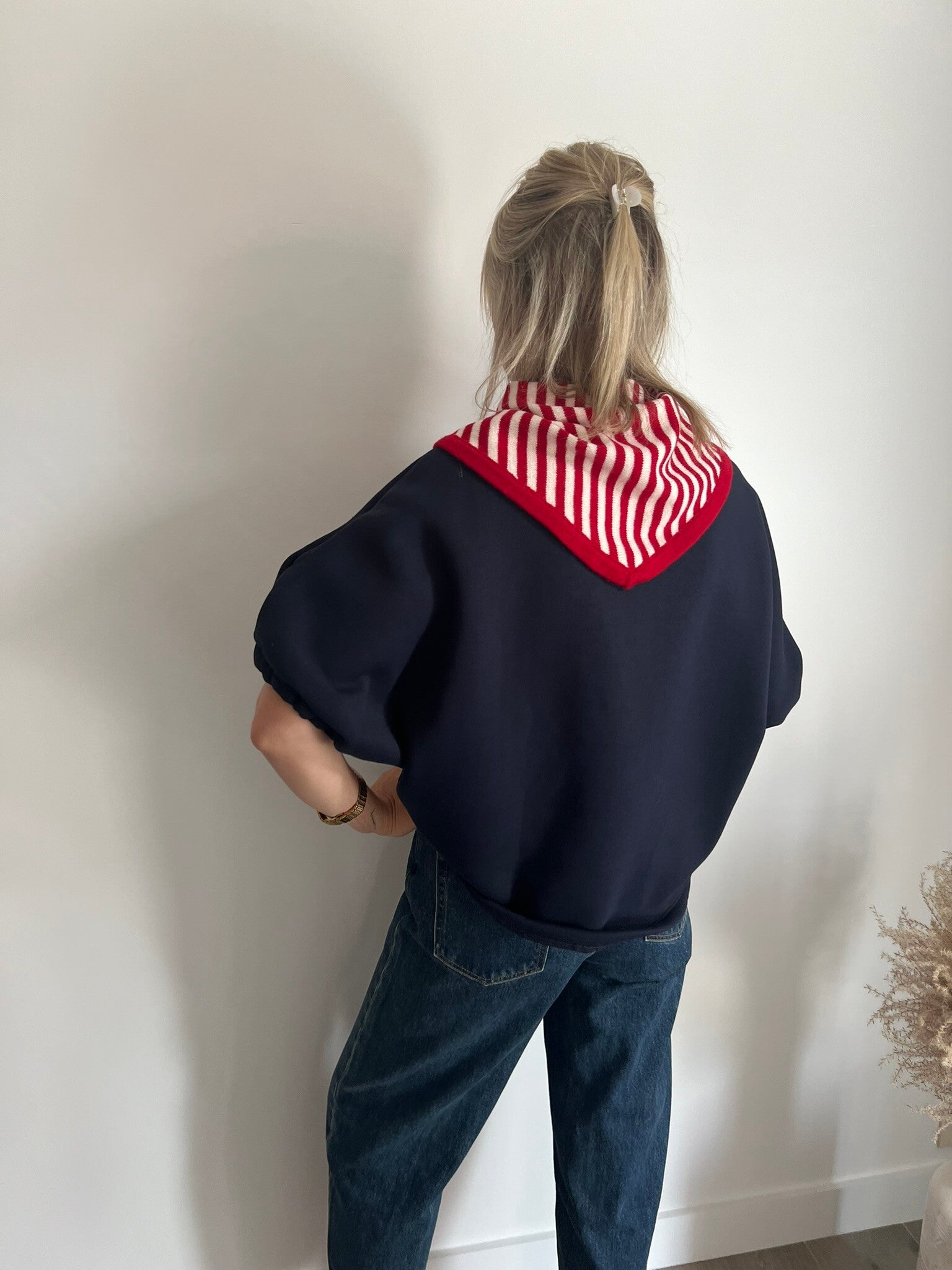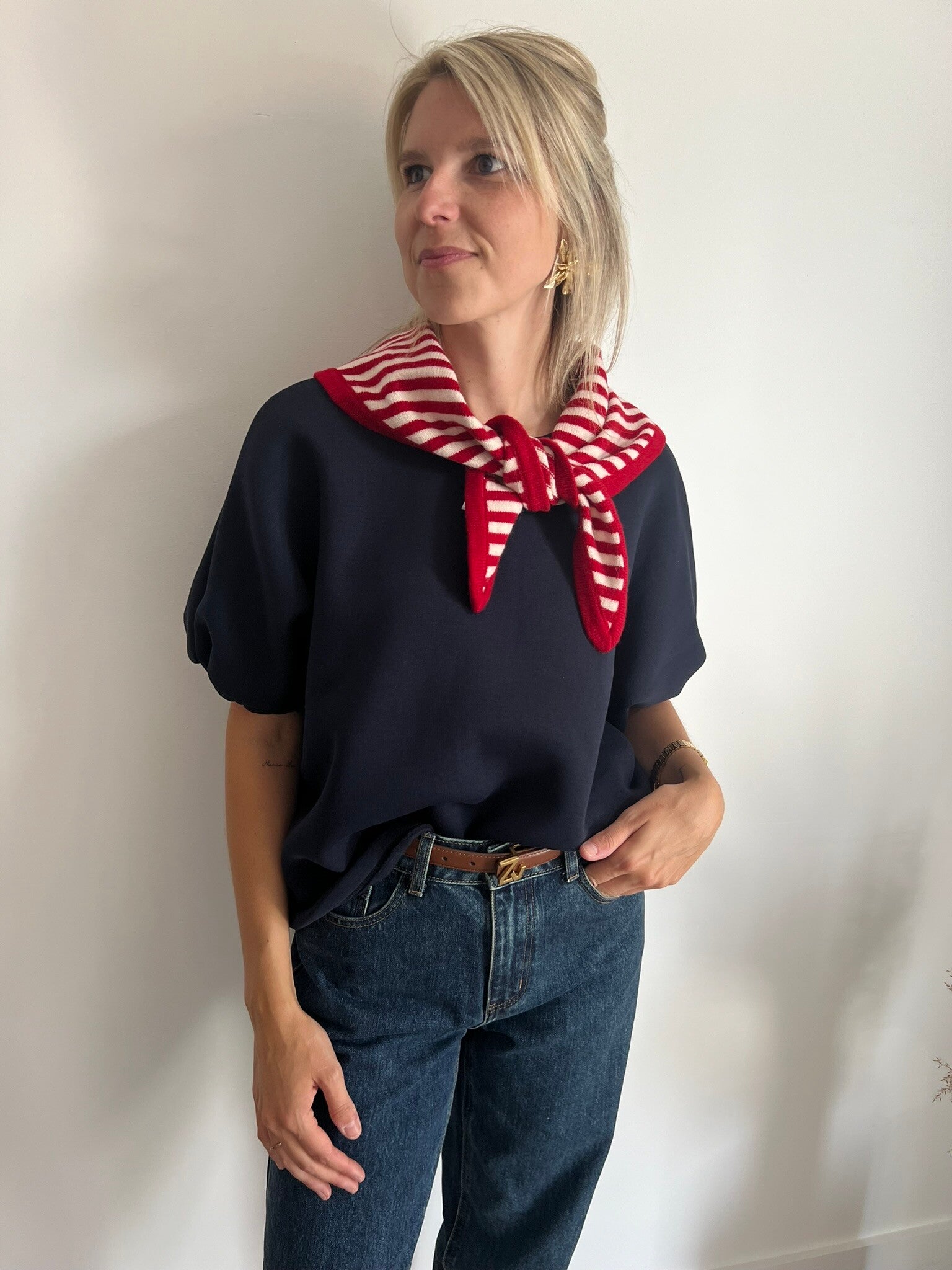 Striped! ♡Superleuk rood gestreept sjaaltje in driehoek, prikt niet! Samenstelling:62 % polyester28 % polyamide10 % wol