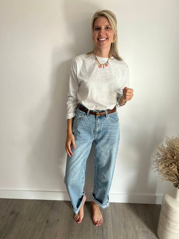 Dit lichtgrijs basic shirt kan niet ontbreken in jouw garderobe. Het shirtje is superzacht en zit echt perfect. Combineer onder een leuke knit of sweater dit seizoen!