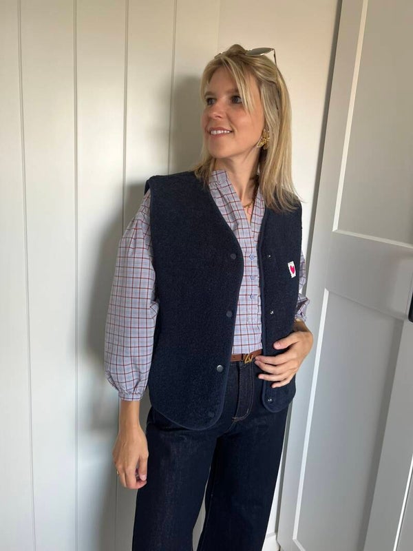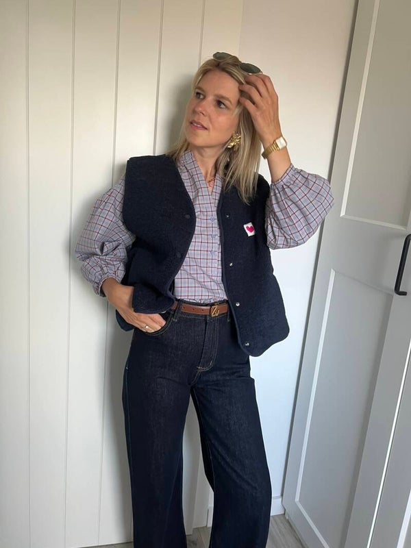 Het jasje is beschikbaar in maat S/M & M/L en valt op maat. Julie draagt maat S/M en meet 1m72.