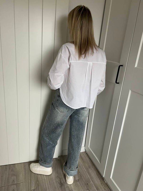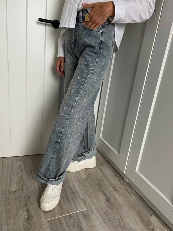 Prachtige denim met steentjes - wide fit met supermooie wassing!