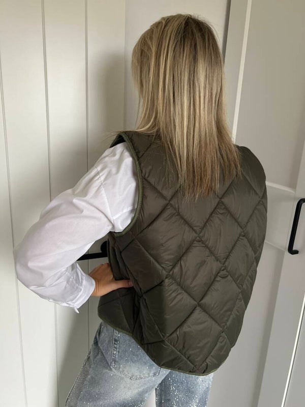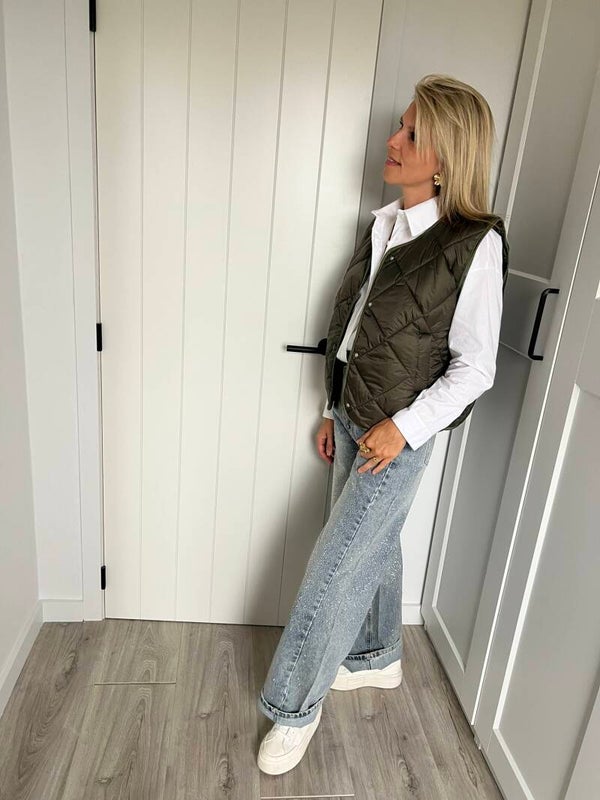 Doudoune! ♡Klassevolle kaki bodywarmer - met drukknopen. Samenstelling:100 % polyesterFit:De bodywarmer is beschikbaar in maat TU en past tot M/L. Julie draagt maat TU en meet 1m72.