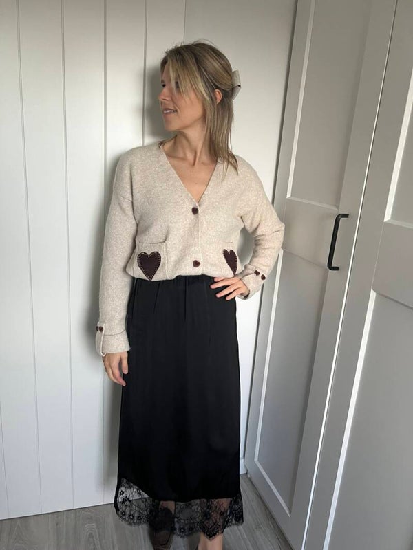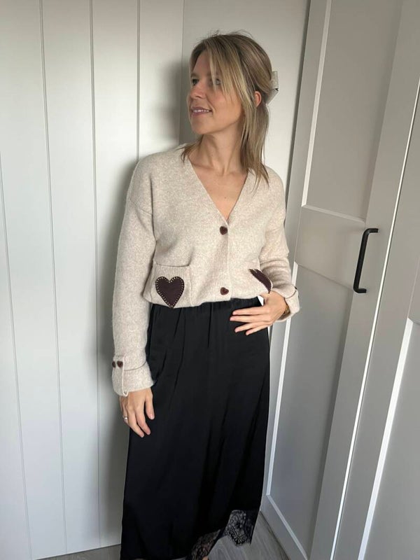 Prachtige beige gilet met mooie hartjesdetails. De gilet is superzacht & prikt niet!