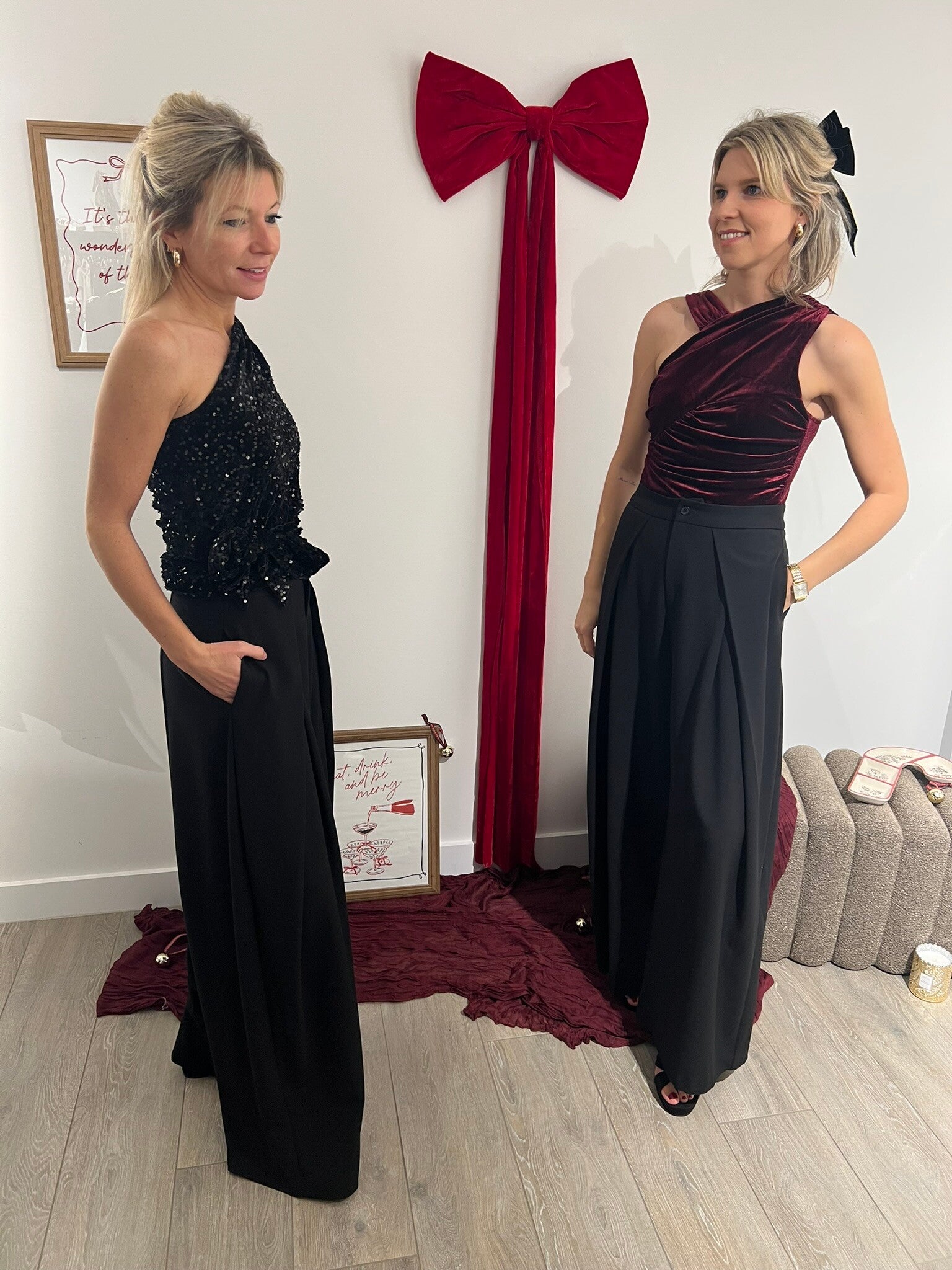 De broek is beschikbaar in maat 36, 38, 40 & 41 en valt op maat. Ann-Sophie draagt maat 36 en meet 1m68. Julie draagt maat 36 en meet 1m72.