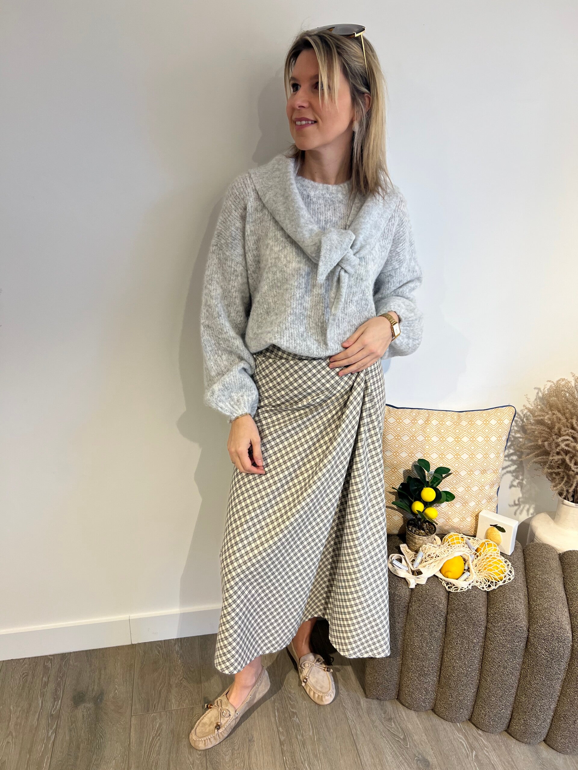 Supermooie grijze knit met ronde hals. De knit prikt niet & kan eindeloos worden gecombineerd. Ook superleuk in combinatie met een sjaaltje.
